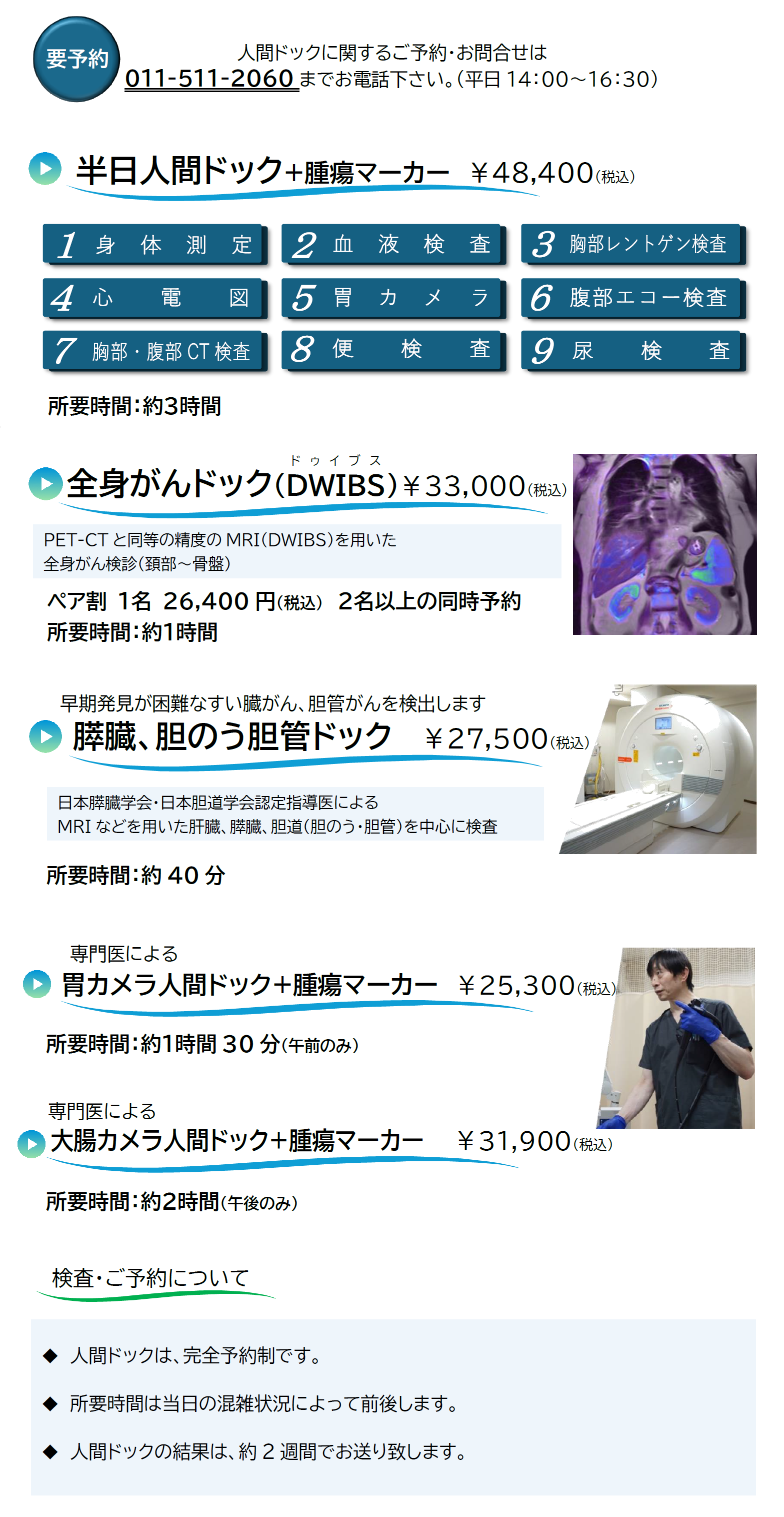 ご予約の変更やキャンセルをご希望される場合は、当院代表電話(011-511-2060)にご連絡下さい。